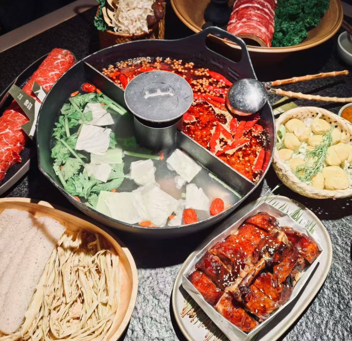 The quintessential Chengdu hot pot is a fiery and flavorful affair. The broth is typically made with a generous amount of chili peppers, Sichuan peppercorns(花椒), and beef tallow, creating a numbing and spicy sensation that is both addictive and satisfying. Diners can choose from a variety of ingredients to cook in the boiling broth, including thinly sliced beef, mutton, tripe(毛肚), duck intestine(鸭肠), and an array of fresh vegetables. The key to enjoying hot pot is to master the art of dipping and cooking, ensuring that each bite is infused with the perfect blend of flavors.
