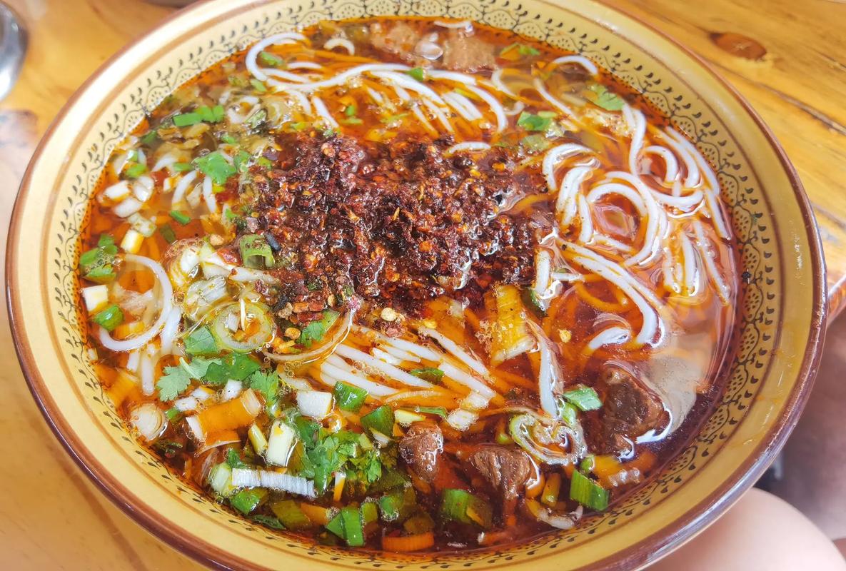 Midu Rice Noodles(弥渡米线): A unique twist on traditional rice noodles, Midu Rice Noodles are sheets of delicate rice flour filled with seasoned soy, herbs, and chili, making for a vibrant taste with each bite. Often wrapped or rolled, they are soft yet sturdy, capturing the essence of fresh ingredients. This dish originated in the town of Midu, near Dali, where it has been perfected for generations, showcasing both local flavors and a strong connection to the region’s agricultural roots.