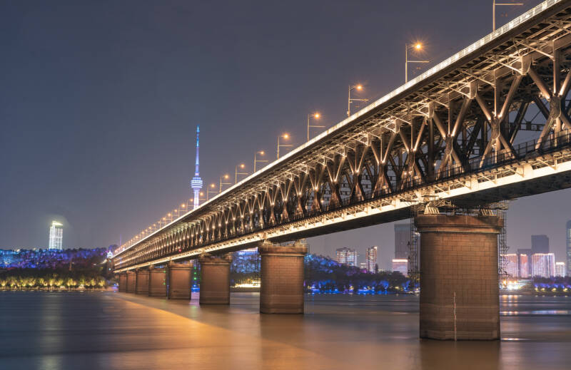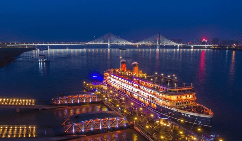 Evening: Stroll along the riverbank and admire the Wuhan Yangtze River Bridge(武汉长江大桥) as it lights up at night, a perfect introduction to the city’s blend of history and modernity.