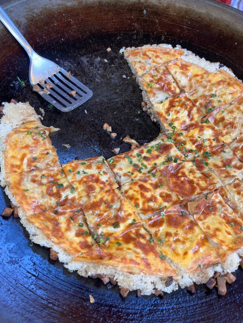 Sanxian Doupi, literally “three-delicacy bean skin,” is another beloved Wuhan specialty often enjoyed for breakfast. Despite its name, it is not made from tofu skin but rather from a golden pancake-like layer of rice flour, mung bean flour, and egg. The filling traditionally includes sticky rice, pork, and mushrooms, though modern versions may add shrimp or chicken. Pan-fried until crispy outside and soft inside, doupi is fragrant, hearty, and uniquely Wuhan. It represents the city’s creativity in transforming simple ingredients into flavorful snacks. For many locals, doupi and hot dry noodles are the perfect breakfast pairing.