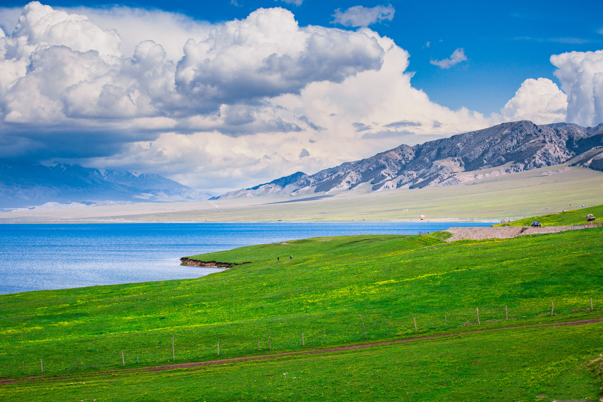 Arrive in Yining, the main city in Ili, by morning flight or overnight train. Pick up your rental car or meet your driver. After a local breakfast, drive westward to Sayram Lake (about 1.5–2 hours). Spend the afternoon walking along the lakeside trails, enjoying the alpine scenery, and photographing the lake against the snow-capped Tianshan Mountains. If visiting in summer, wildflowers will cover the meadows. Optionally, stay overnight in a lakeside yurt or return to Yining for the night.
