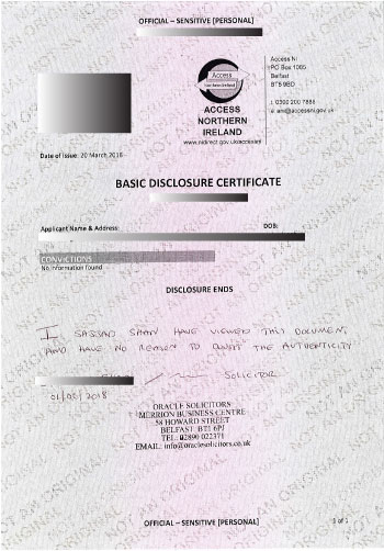 AccessNI (Criminal Record Check) after processing: